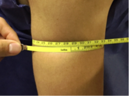Important: The tape must be centered on the posterior surface of the arm. Exhibit 6 shows the correct placement of the measuring tape centered on the posterior surface of the arm, whereas Exhibit 7 shows the measuring tape placed incorrectly.