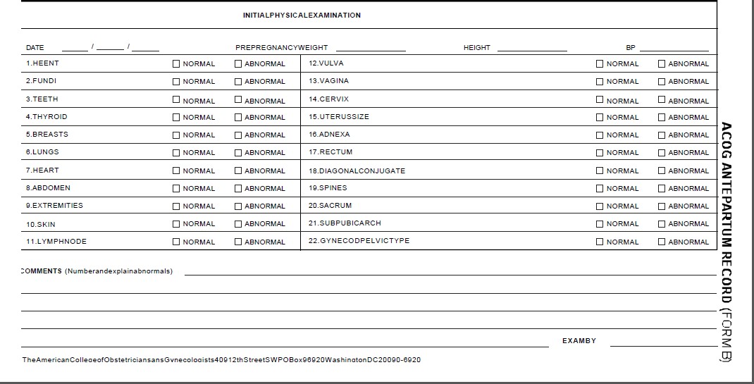 American Congress of Obstetricians and Gynecologists (ACOG), Antenatal Record Forms B and C